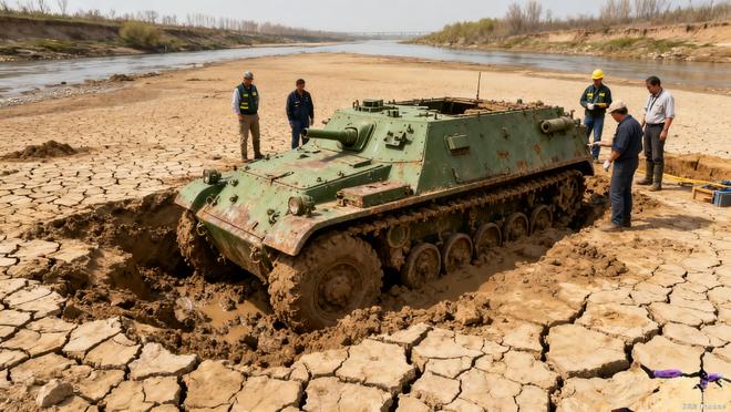 河床干涸露出37年前沉没的运输装甲车破拆完毕后专家们傻眼